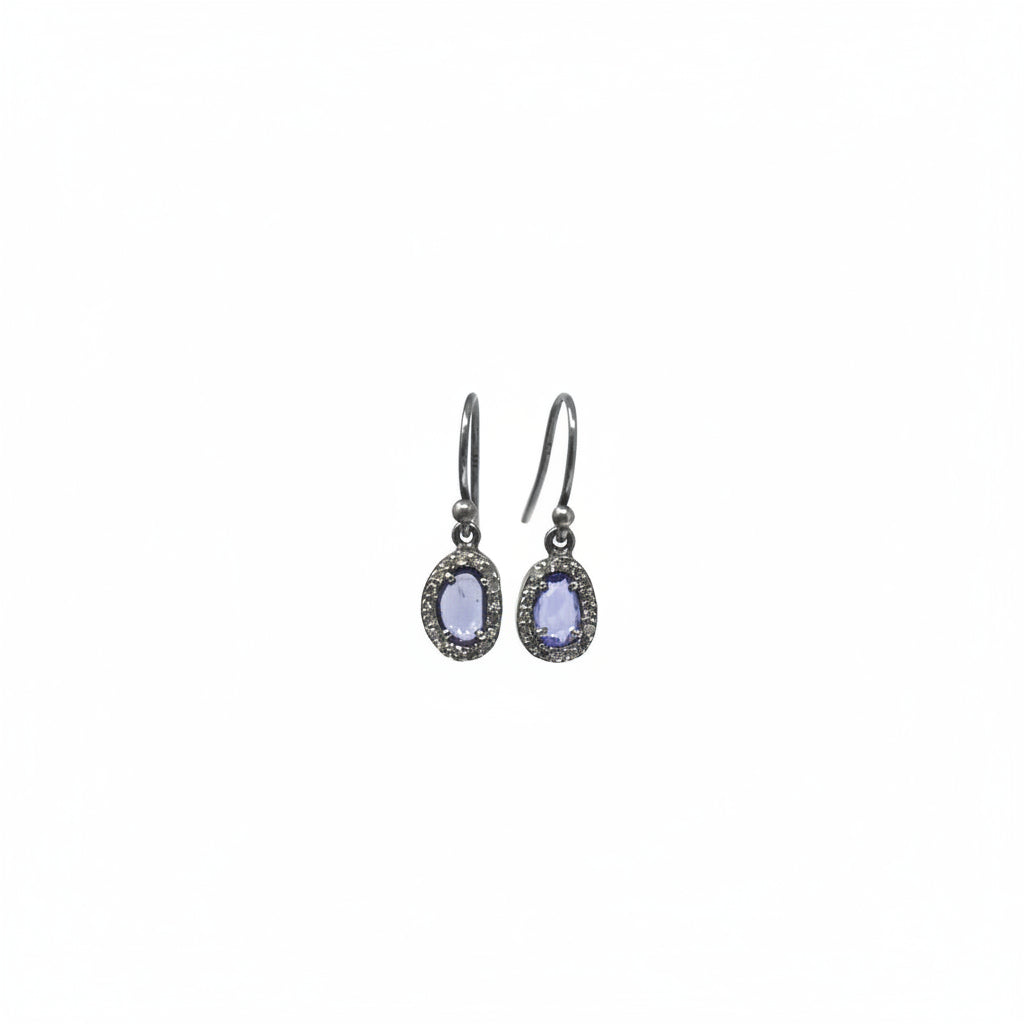 Blue Sapphire and Diamond Halo Drop Earrings