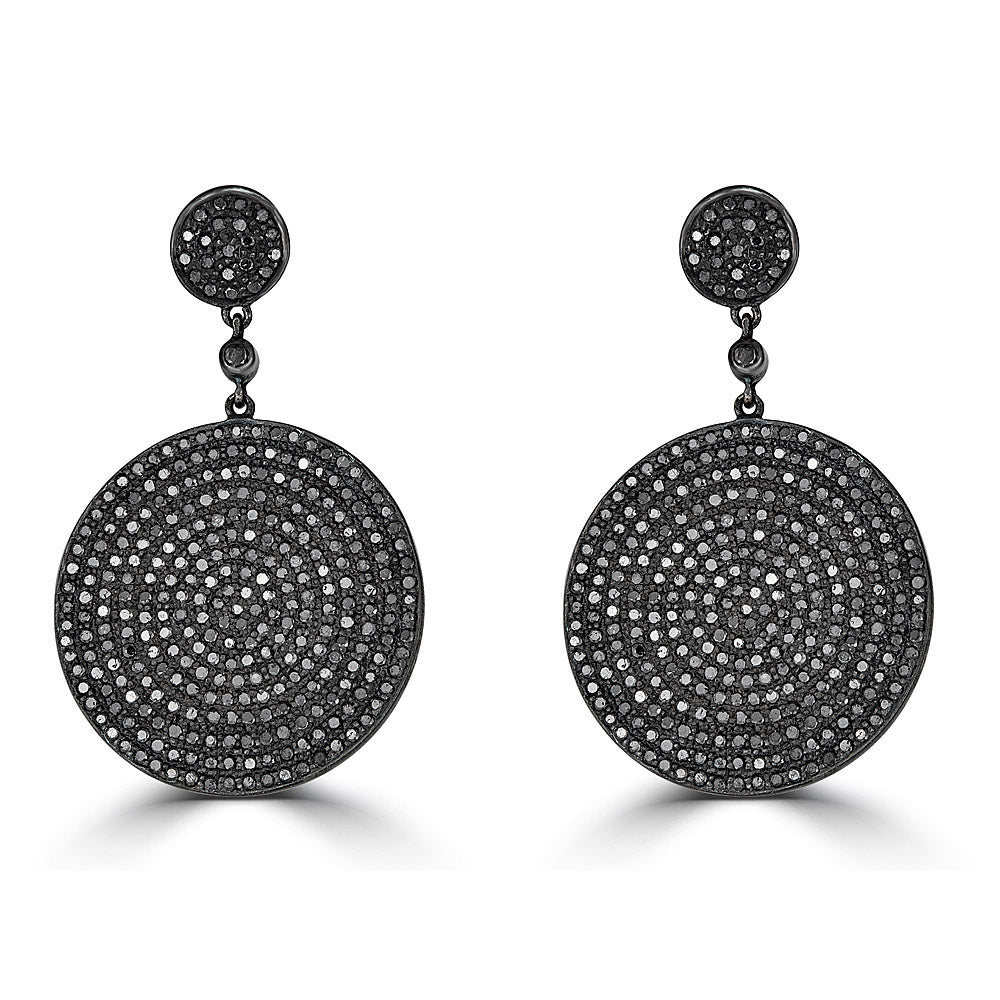 Medium Black Diamond Double Circle Drop Earrings