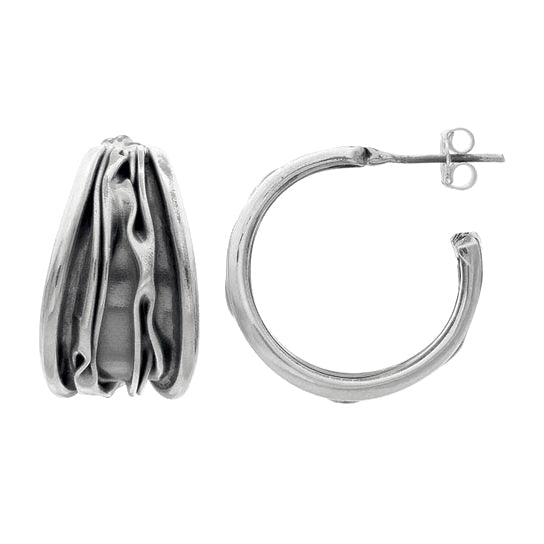 Oxidized Ridged Waves Hoop Earrings