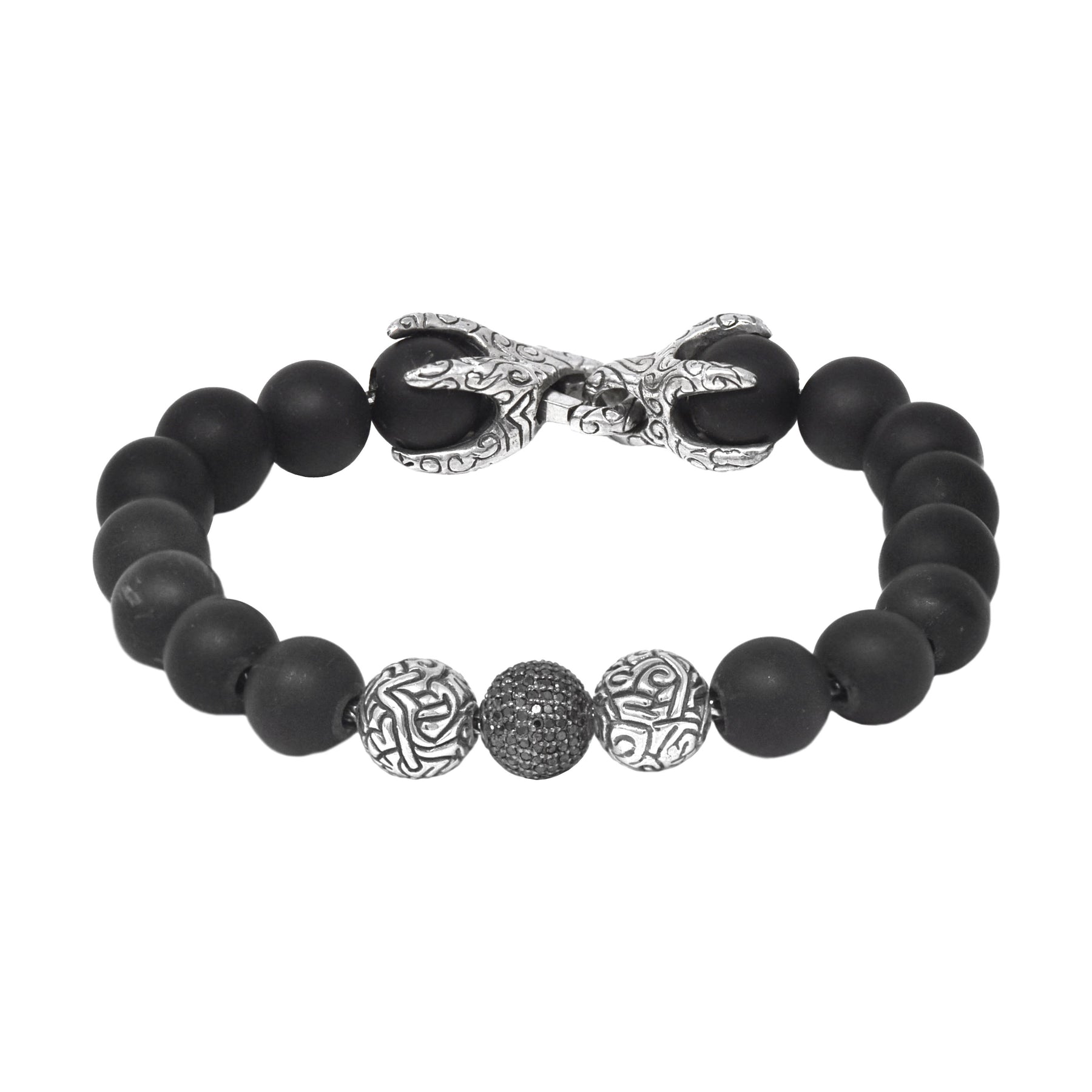 Bead Bracelet With Black Diamond Ball And Claw Clasp