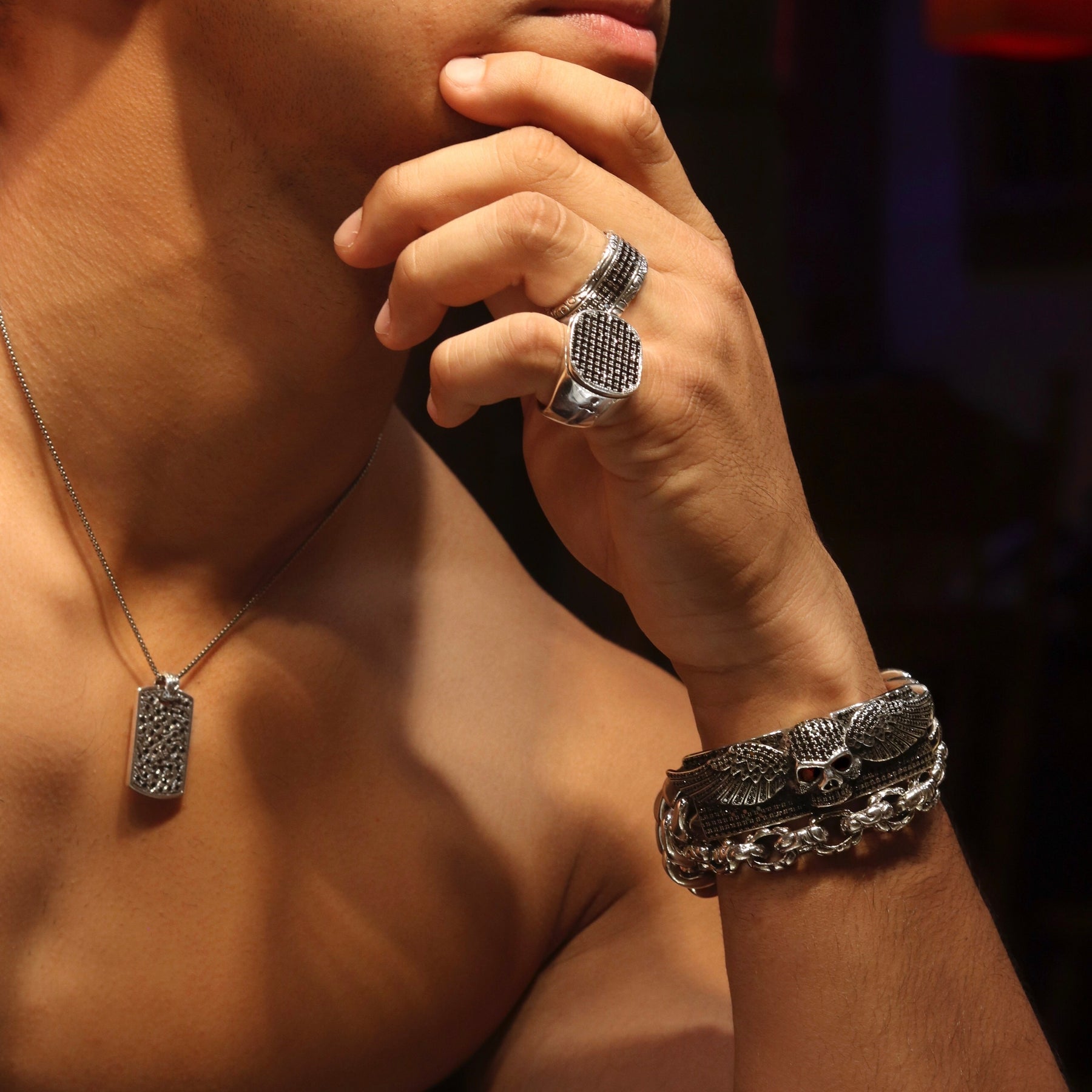 Black Diamond ID Skull Wings Cuban Link Bracelet