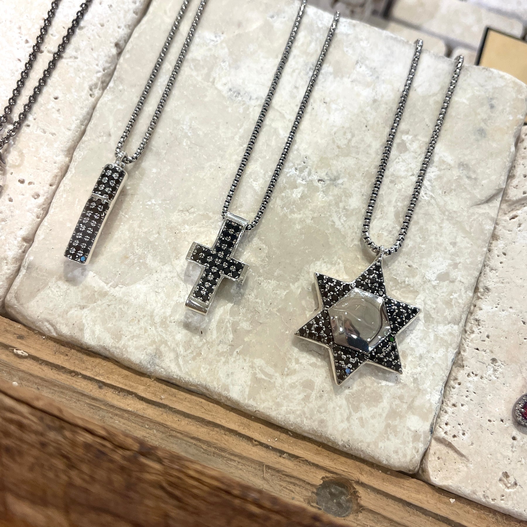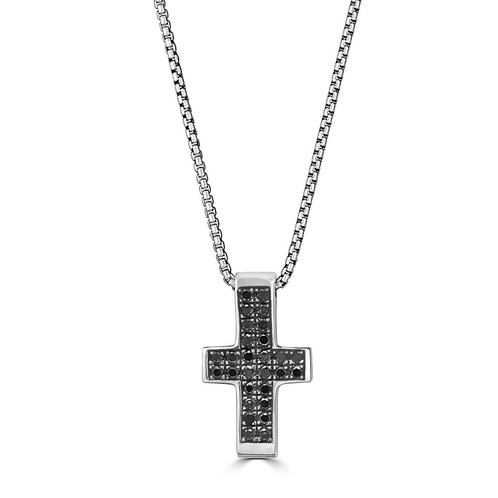 Small Black Diamond Block Cross Pendant Necklace