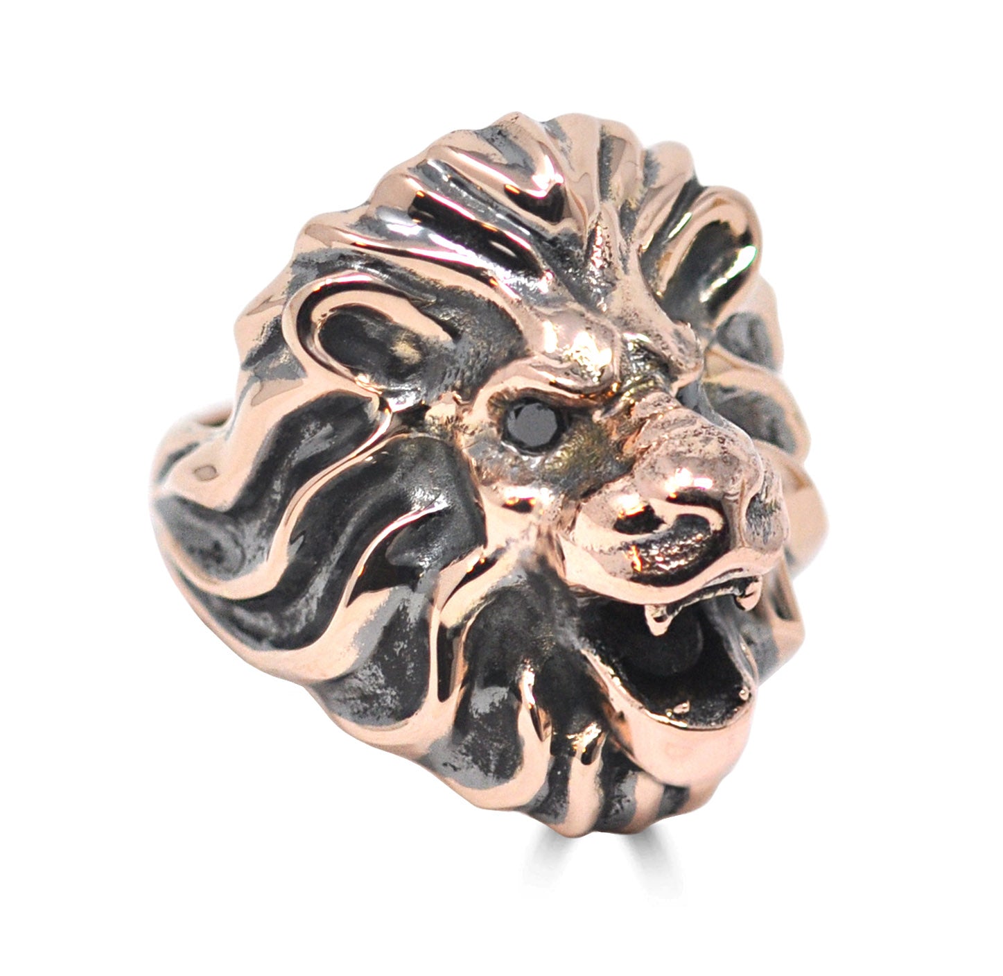 Black Diamond Lion Ring In Rose Gold