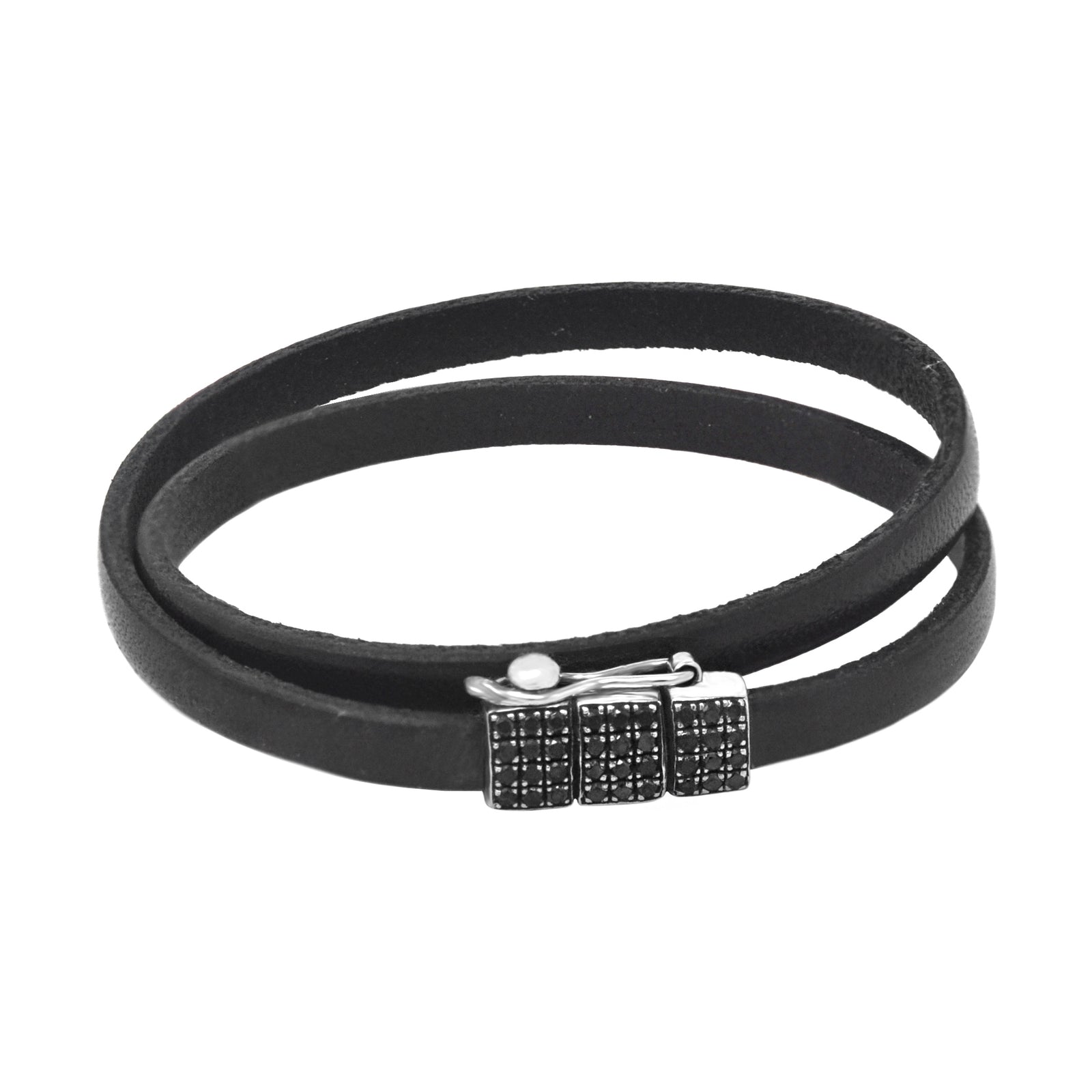 Black Diamond Double Wrap Leather Bracelet