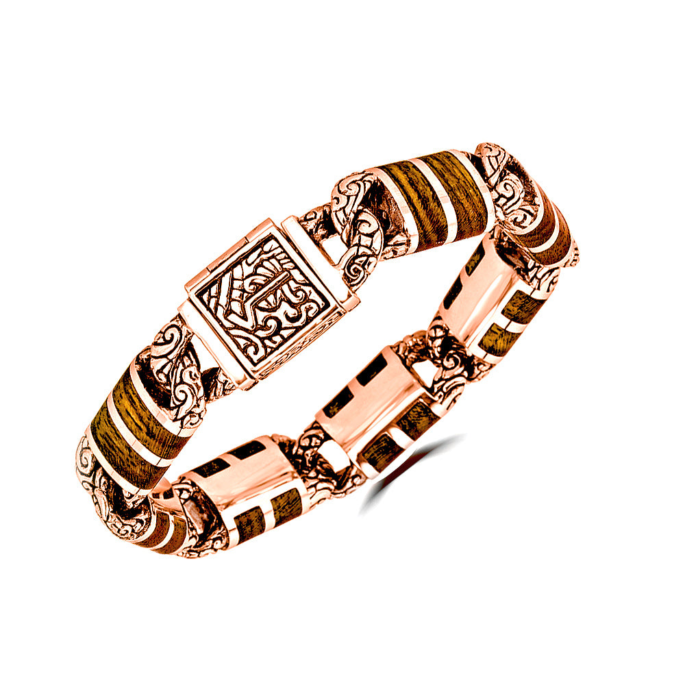 Small KeyDesign Wood Inlay Rigid Link Bracelet In Rose Gold