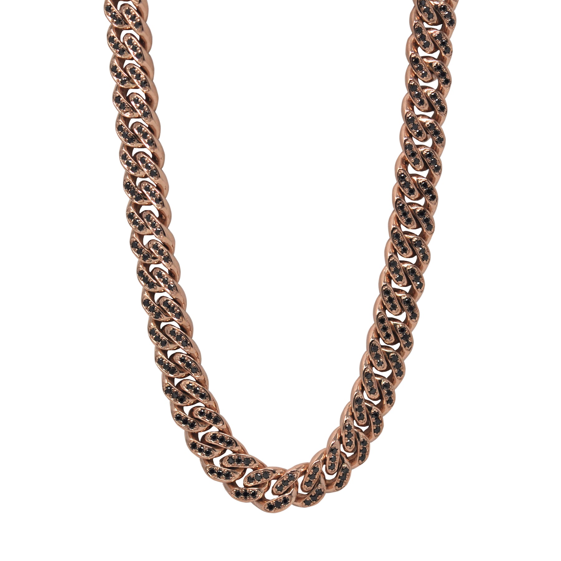 Small Black Diamond Cuban Link Necklace In Rose Gold