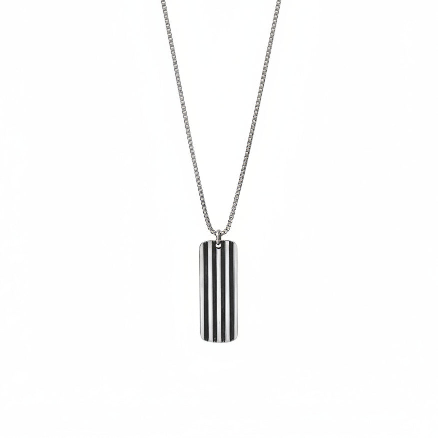 Oxidized Ridged Tag Pendant Necklace