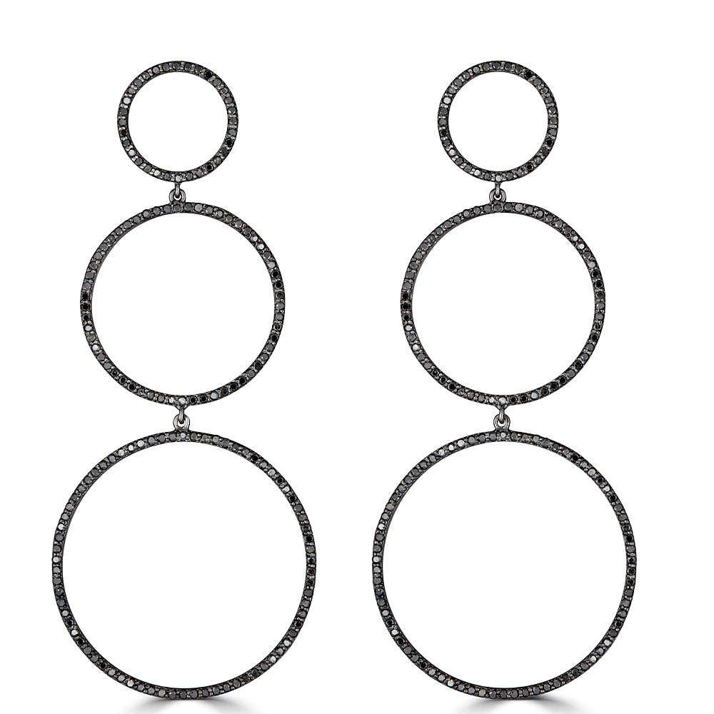 Black Diamond Three Circle Drop Earrings