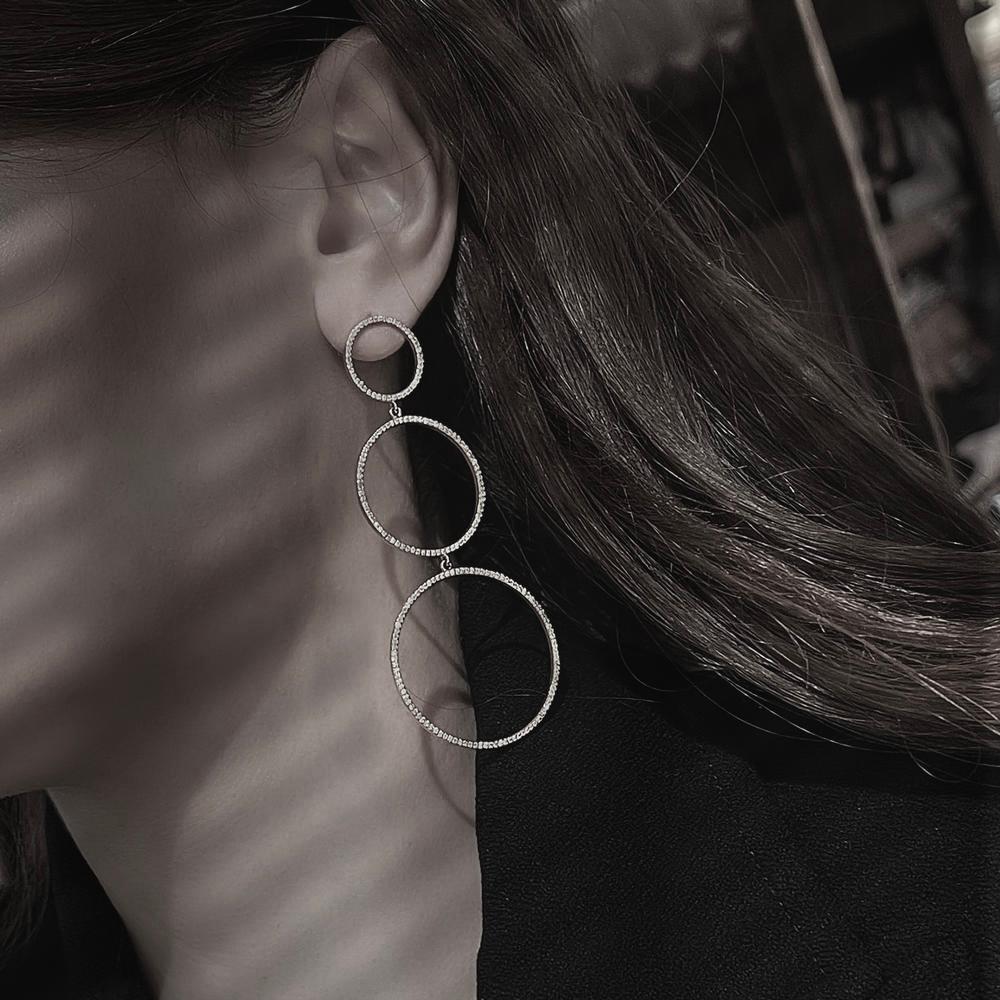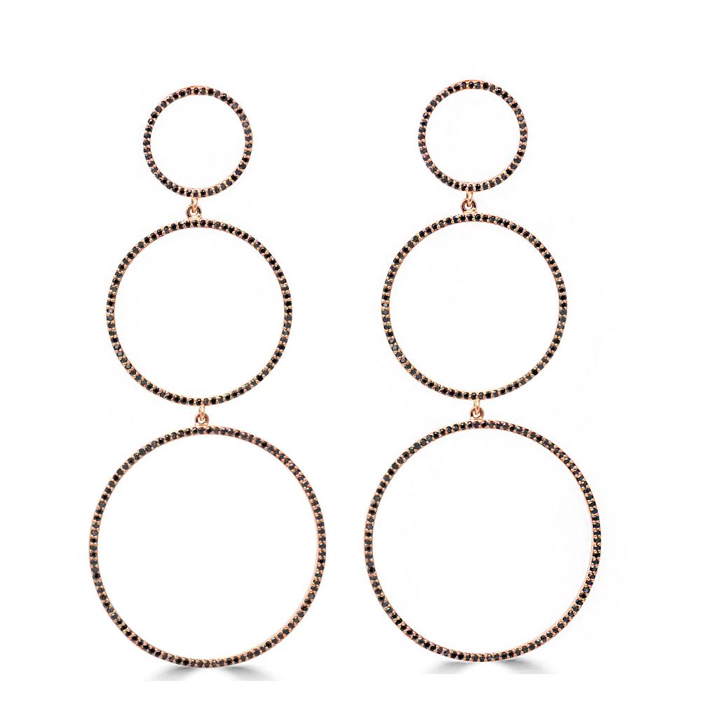 Black Diamond Three Circle Drop Earrings In Rose Gold