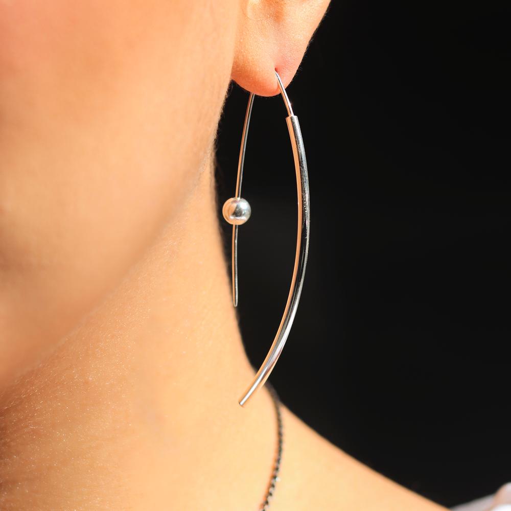 Long Curve Wire Earrings with Ball Post