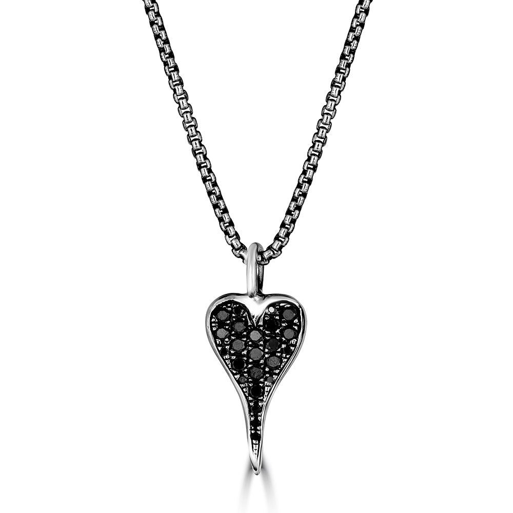 Small Black Diamond Heart Pendant Necklace
