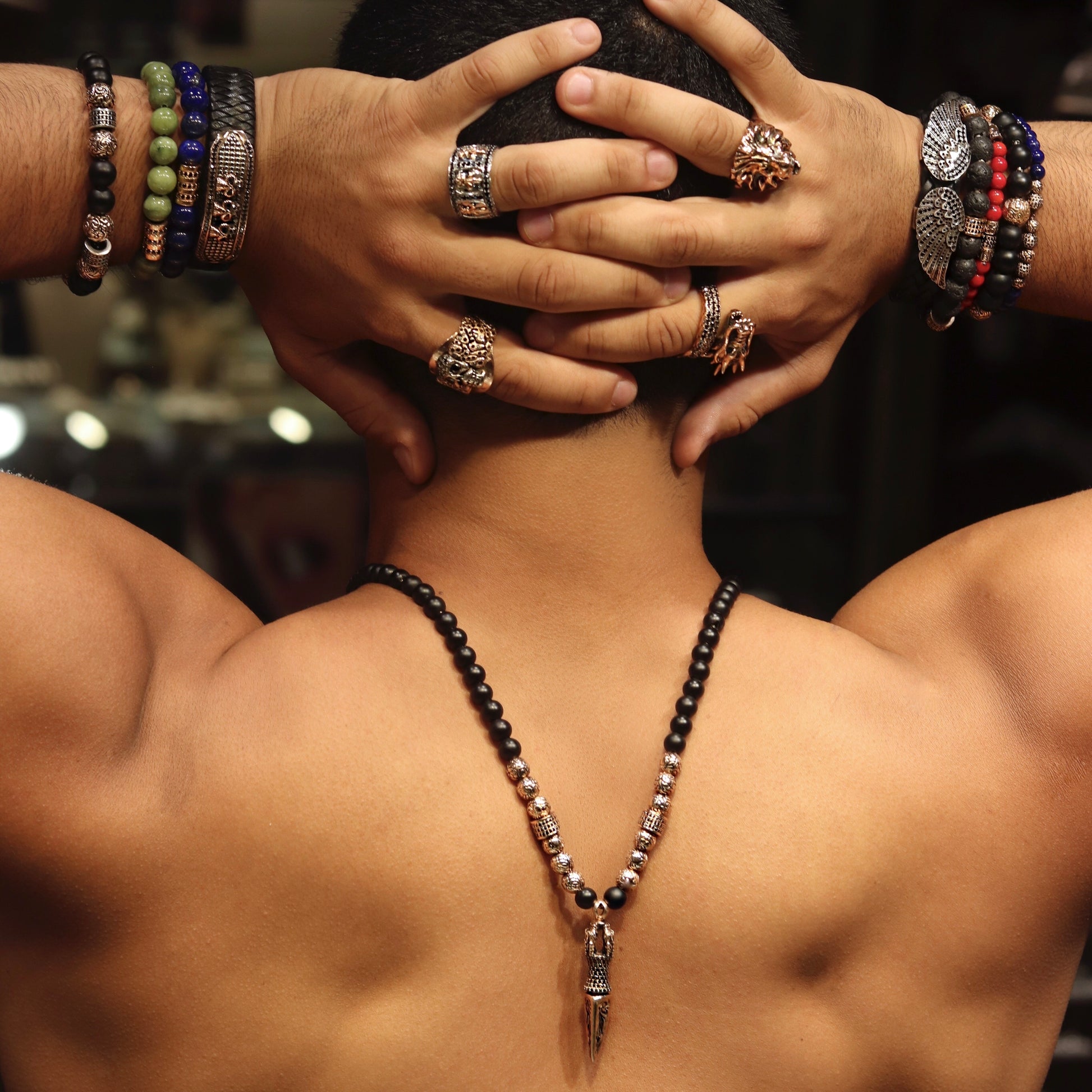 Black Diamond Rose Gold Dagger Beaded Necklace