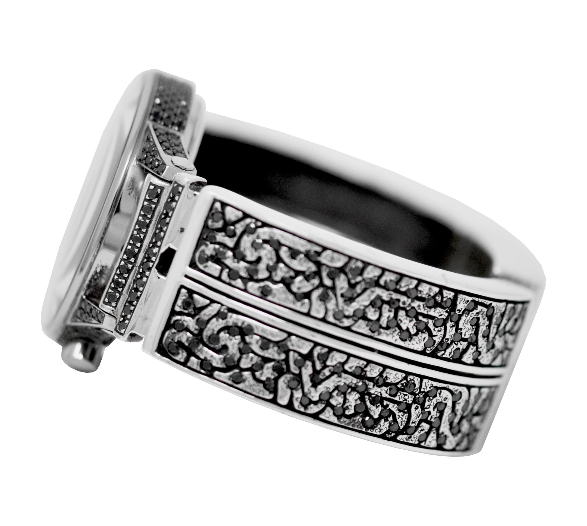 Round Chronograph Watch On Black Diamond KeyDesign Bracelet